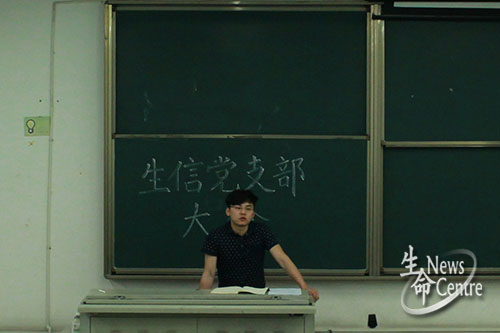 晚上8:20,在各同志都完成自我评议和群众评议后,魏源成老师上台进行自我总结:在过去的半年里,魏老师积极地学习发展党员的细则和党的规定和章程。之后,魏老师像党内同志提出了几点要求。他强调,党支部内的各同志如无特殊情况,必须出席党支部会议;同时,要求党支部各同志积极参加党支部的各项活动。