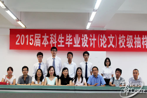 周先礼院长与李遂焰老师先后进行总结发言,他们通过对论文格式的举例,告诫在场学生要注重实验细节,提高对自身的要求,慎重对待自己的毕业设计。11:30,答辩会圆满结束,到场老师与五位答辩选手合影留念。