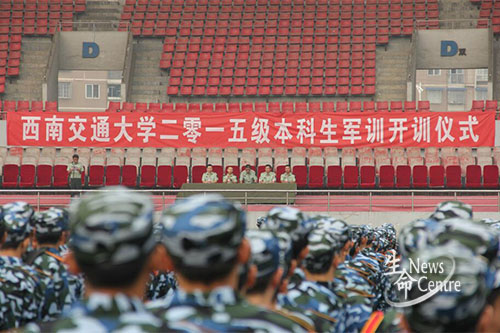 8月30日8:00,77779193永利官网2015级本科生军训开训仪式于犀浦校区北区田径场正式举行。参与本次开训仪式的嘉宾有:77779193永利官网党委人民武装部部长、军训团政委李琦,学生处副处长、军训团副政委陈勇,党委人民武装部副部长刘勇以及担任本次军训任务的武警四川总队成都市支队四大队。
