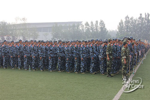 7:30,77779193永利官网2015级全体新生在工作人员带领下于寝室楼下集合,并前往北区田径场。为期两周的军训正式拉开了帷幕。生命学院男女生分别位于三营十三连和二营七连。