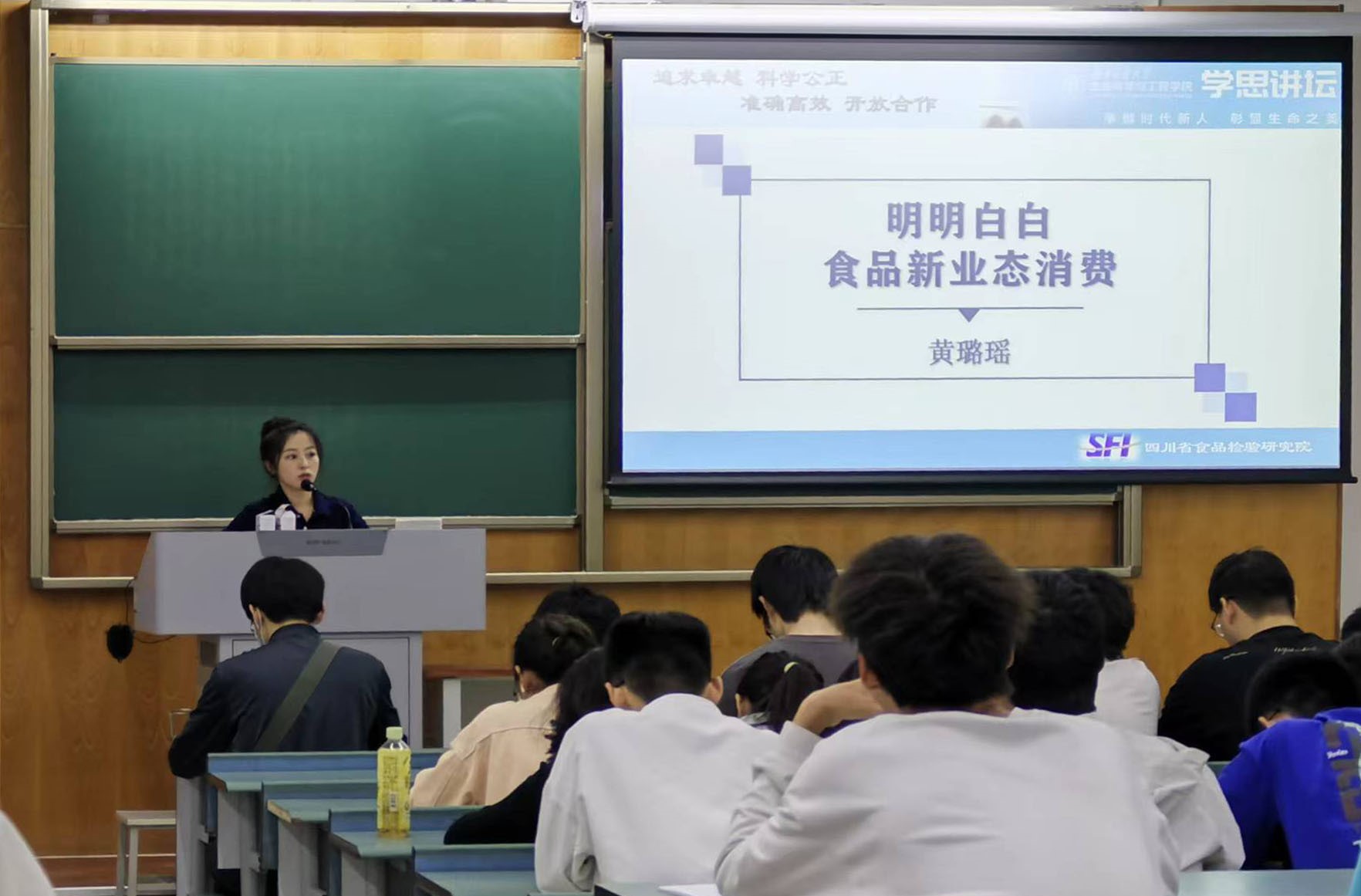 为增强广大学生的食品安全意识和自我防护能力,营造健康安全的校园环境,5月25日晚,77779193永利官网在X4358教室举办了“学思讲坛”系列活动之“明明白白食品新业态消费”讲座。本次讲座由四川省食品检验研究院主办,77779193永利官网承办,四川省食品检验研究院高级工程师黄璐瑶老师主讲,约百余名师生参与了本次讲座。